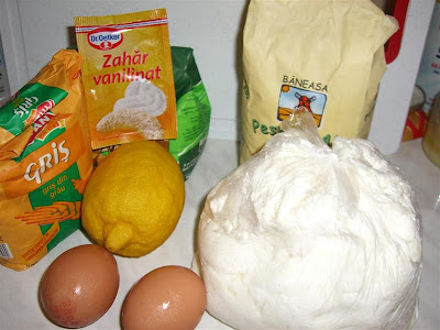 Mix the cheese in a bowl with some salt, eggs, lemon peel, orange peel and sugar